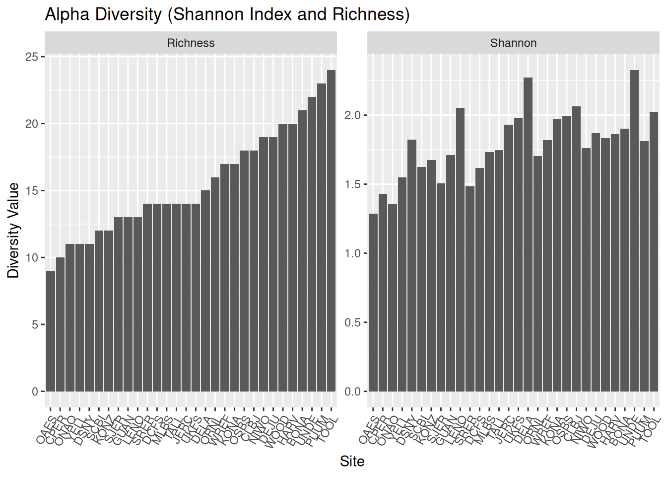 ggtitle("Alpha Diversity (Shannon Index and Richness)") +