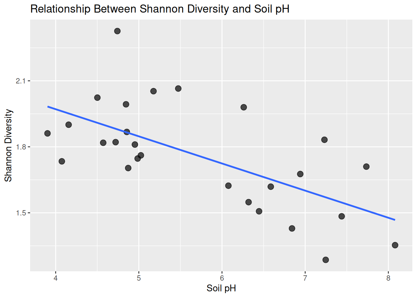ggtitle("Relationship Between Shannon Diversity and Soil pH")