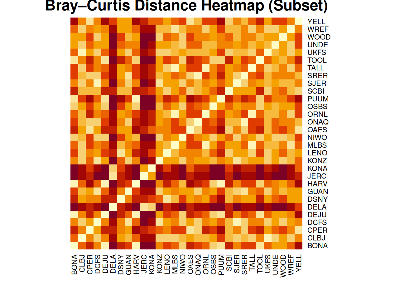 main = "Bray–Curtis Distance Heatmap (Subset)"