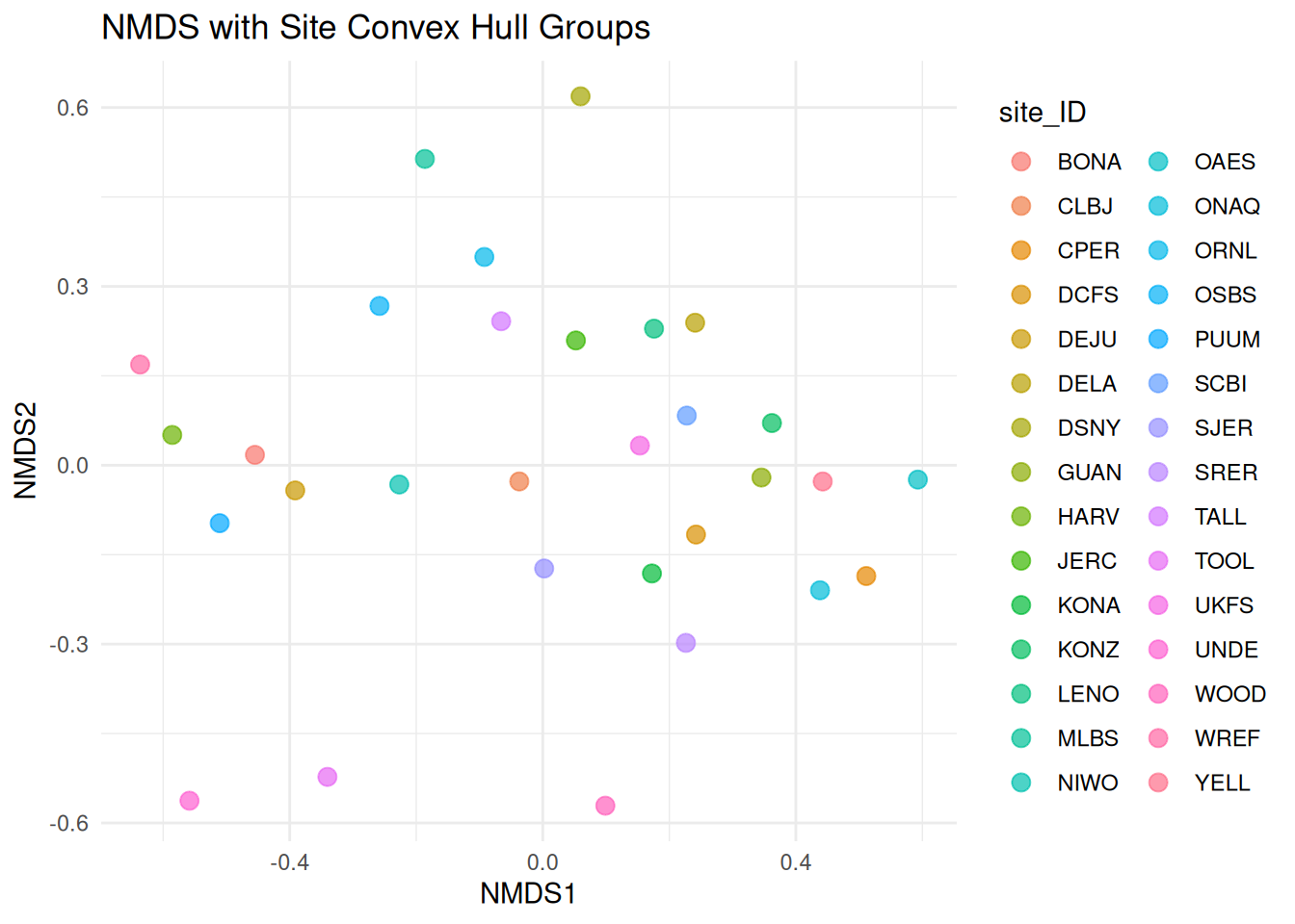 ggtitle("NMDS with Site Convex Hull Groups") +